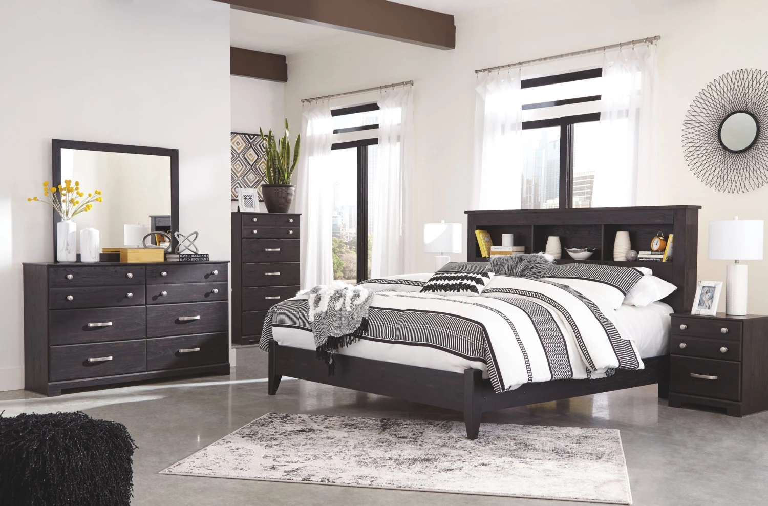 Ashley Bedroom Reylow Dark Brown King Bookcase Bed W/ Dresser Mirror & Nightstand