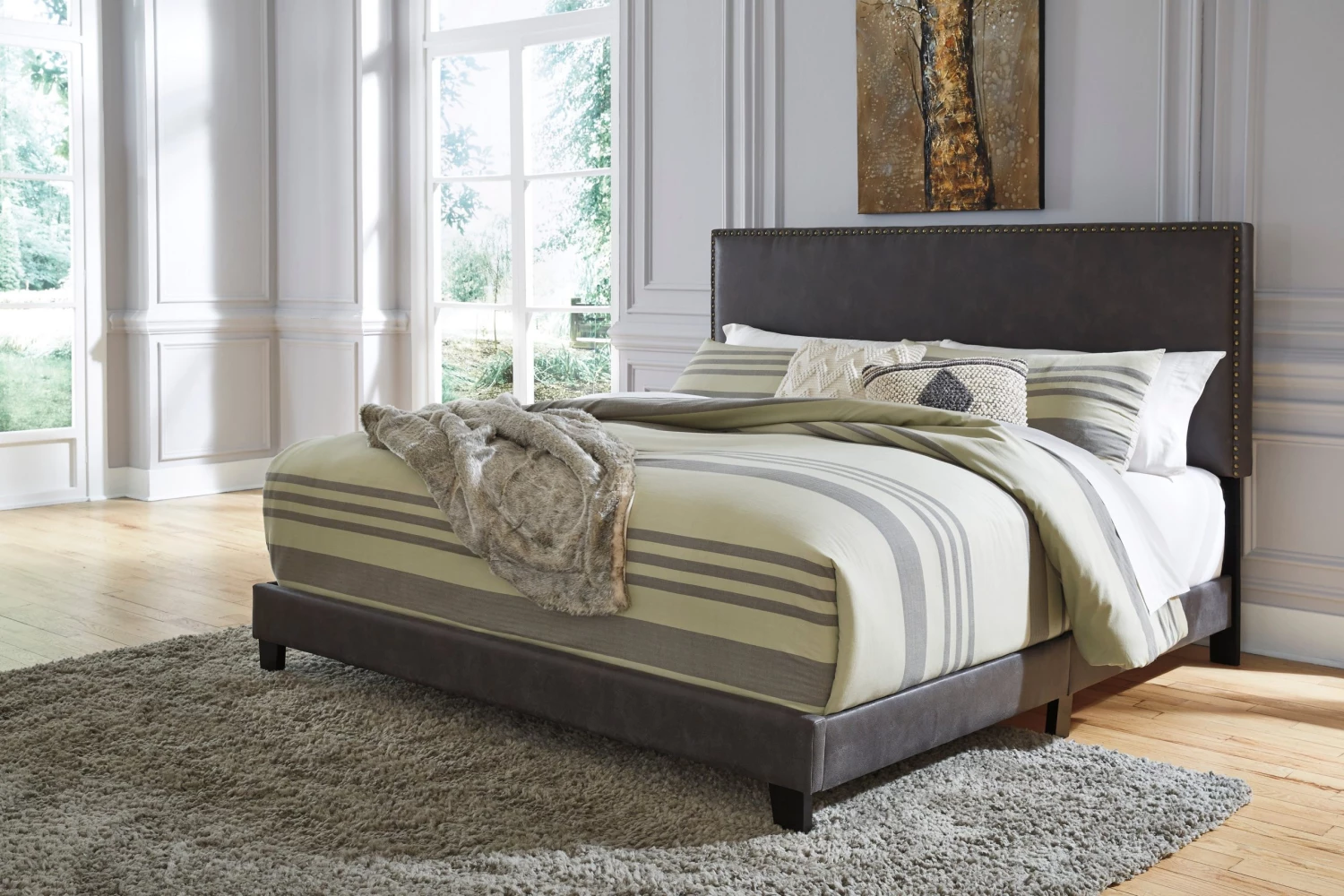Ashley Bedroom Vintasso Queen Upholstered Nailhead Trim Headboard, Footboard, Roll Slats -Gray