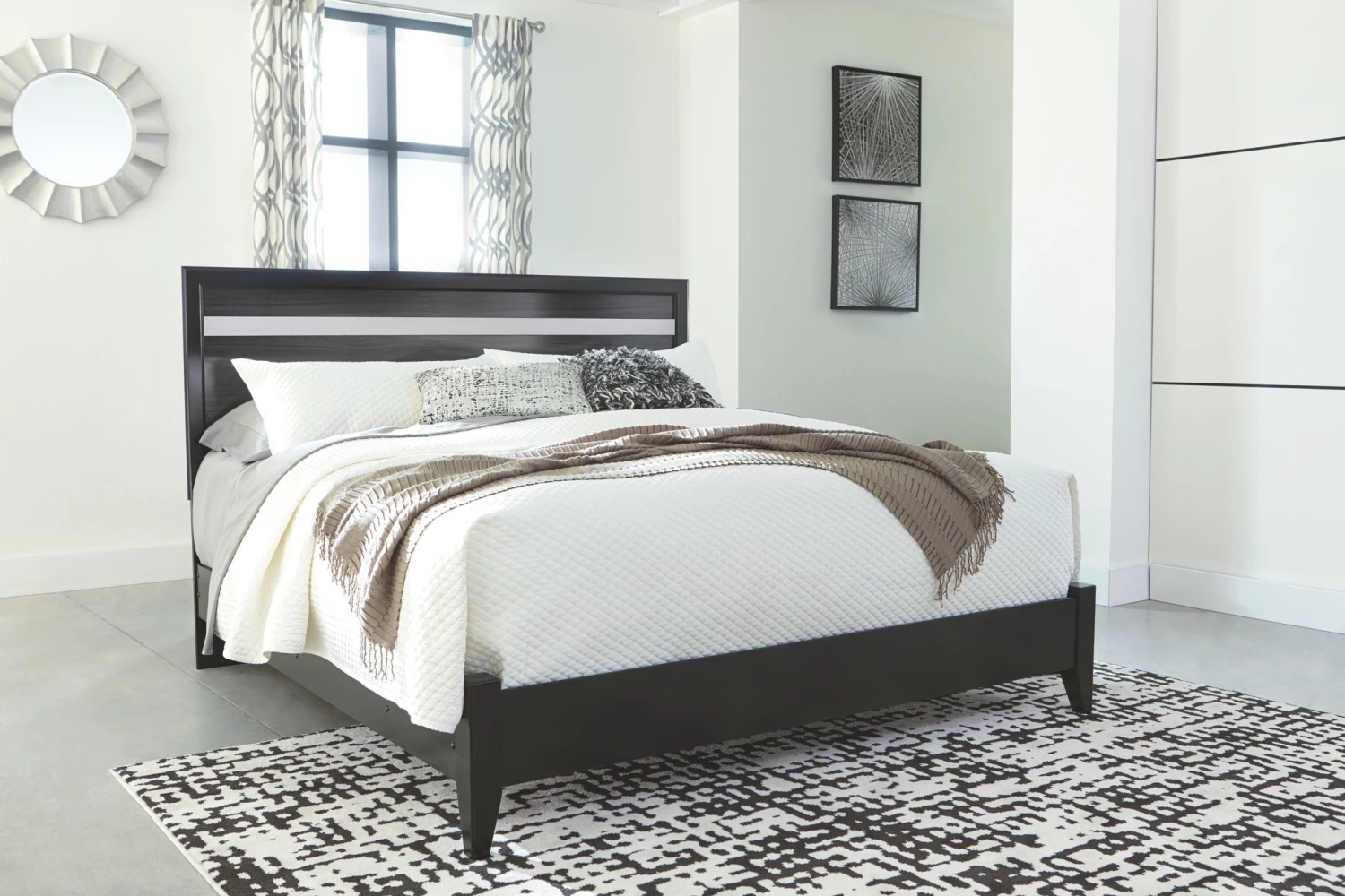High gloss black finish with replicated straight silver walnut grain framed in a black finish. Luxurious mouldings and jewelry drawer fronts finished in a glitter material. Chest (46) and dresser (31) feature felt bottom multi compartment jewelry drawer. Chrome color handles accented with faux crystals. Side roller glides for smooth operating drawers. Slim profile dual USB charger for the back of the night stand tops. Panel headboard (57 58) legs have four adjustable height options for optimal Bedding height. Queen and king Storage Footboard (54S 56S) requires the B100-13 or B100-14 roll slats. Queen (57) king (58) panel headboards can attach to a bolt-on metal Bed B100-31 or B100-66 respectively.