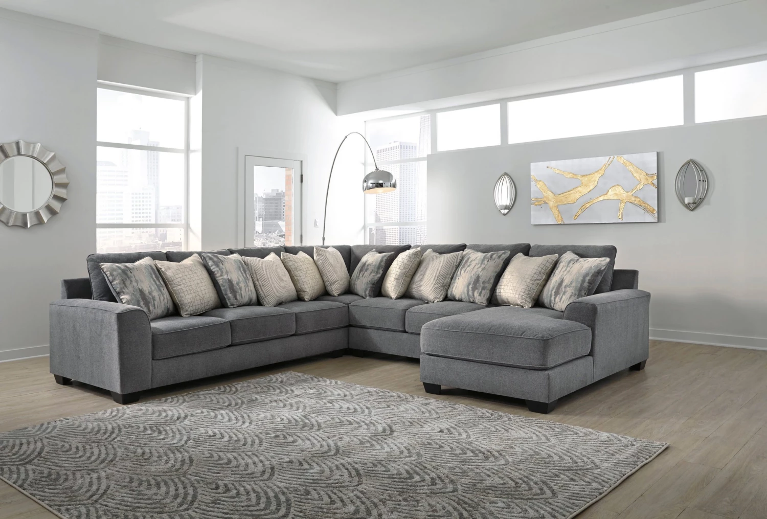 Life may be full of sacrifices but with the Castano sectional and ottoman in jewel gray you compromise nothing to get everything you want. Contemporary style pillowy softness and exceptional craftsmanship are yours for the taking at a price thatโs surprisingly affordable for such a generously scaled quality offering. Designed for looks and longevity this sectional and ottoman includes our exclusive platform foundation system made to resist sagging and maintain a tight wrinkle-free aesthetic.