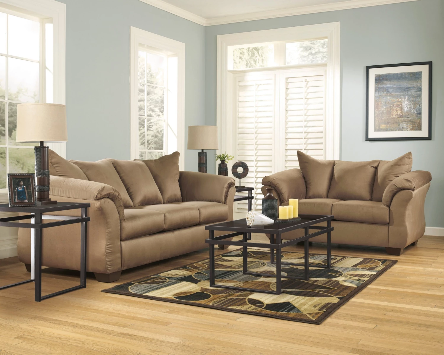With the exciting contemporary style of the sweeping padded arms and plush pillow back design, the sleek beauty of the Darcy-Mocha upholstery collection is sure to awaken the decor of any home environment while offering the comfort that you have been searching for.