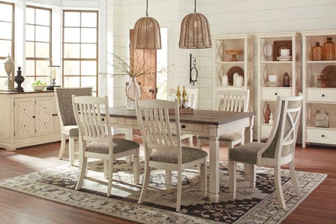 Ashley Dining Room Bolanburg Table 2 Side Chairs, 2 Arm Chairs & Bench