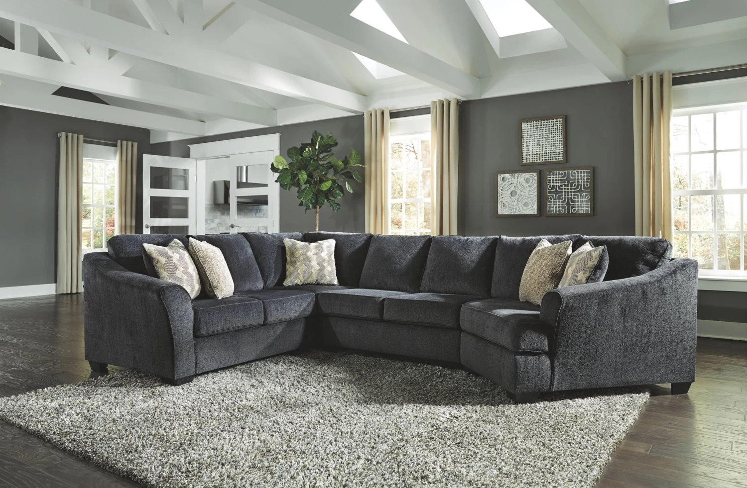 Eltmann – Slate – Armless Loveseat-49″W x 40″D x 38″H – 71.1 lbs Eltmann – Slate – LAF Sofa w/Corner Wedge-97″W x 40″D x 38″H – 145.4 lbs Eltmann – Slate – RAF Cuddler-61″W x 49″D x 38″H – 101.6 lbs