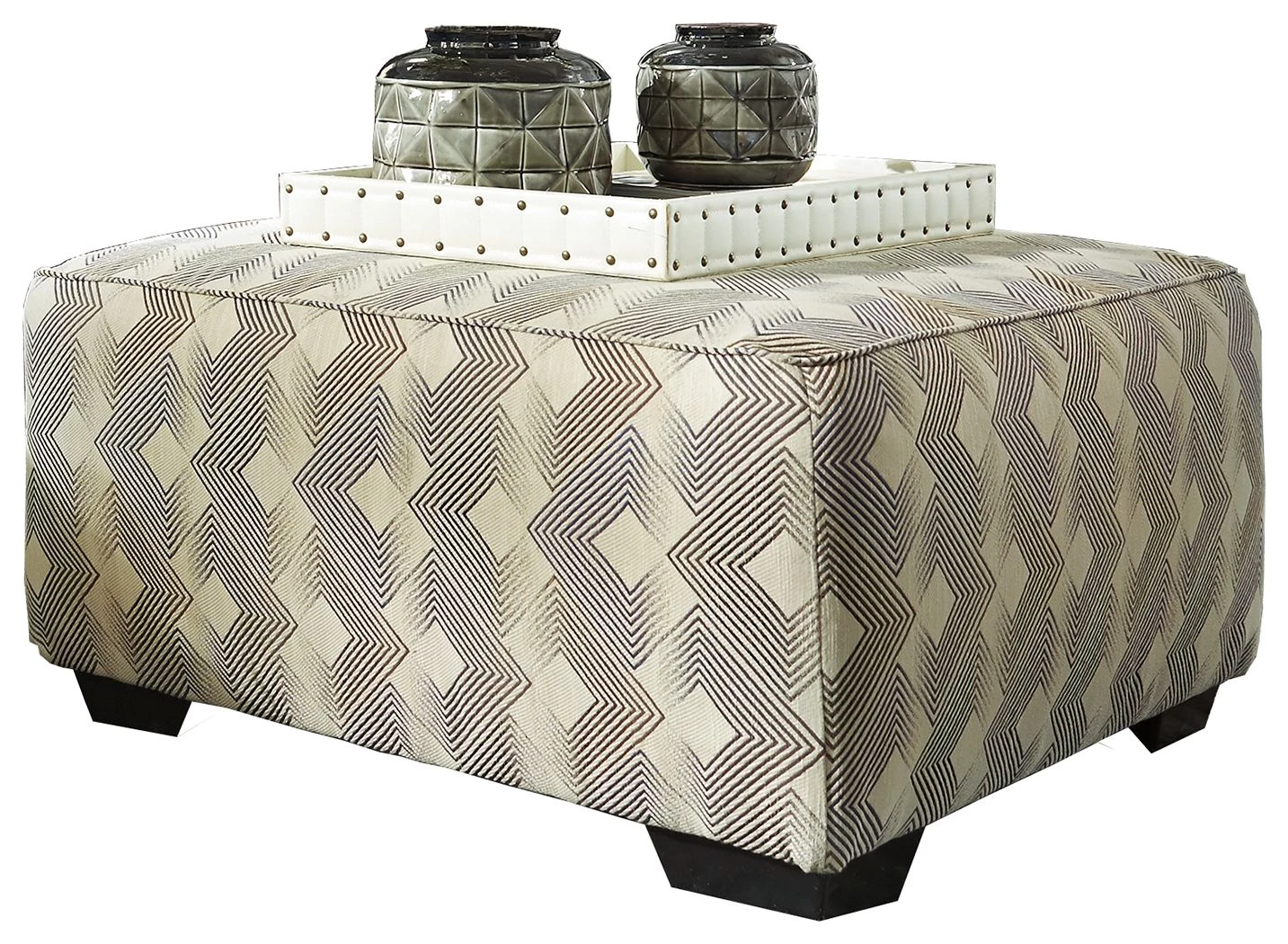 - Exposed feet with faux wood finish