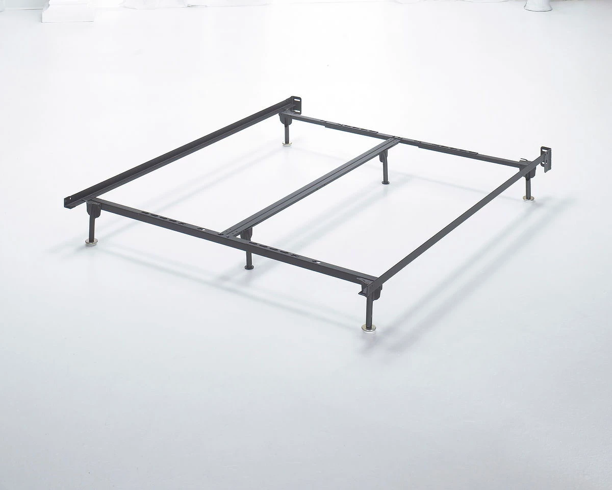 Sturdy metal bed frame supports queen/king/california king mattresses and box springs. Bolts connect frame to most queen/king/california king headboards.