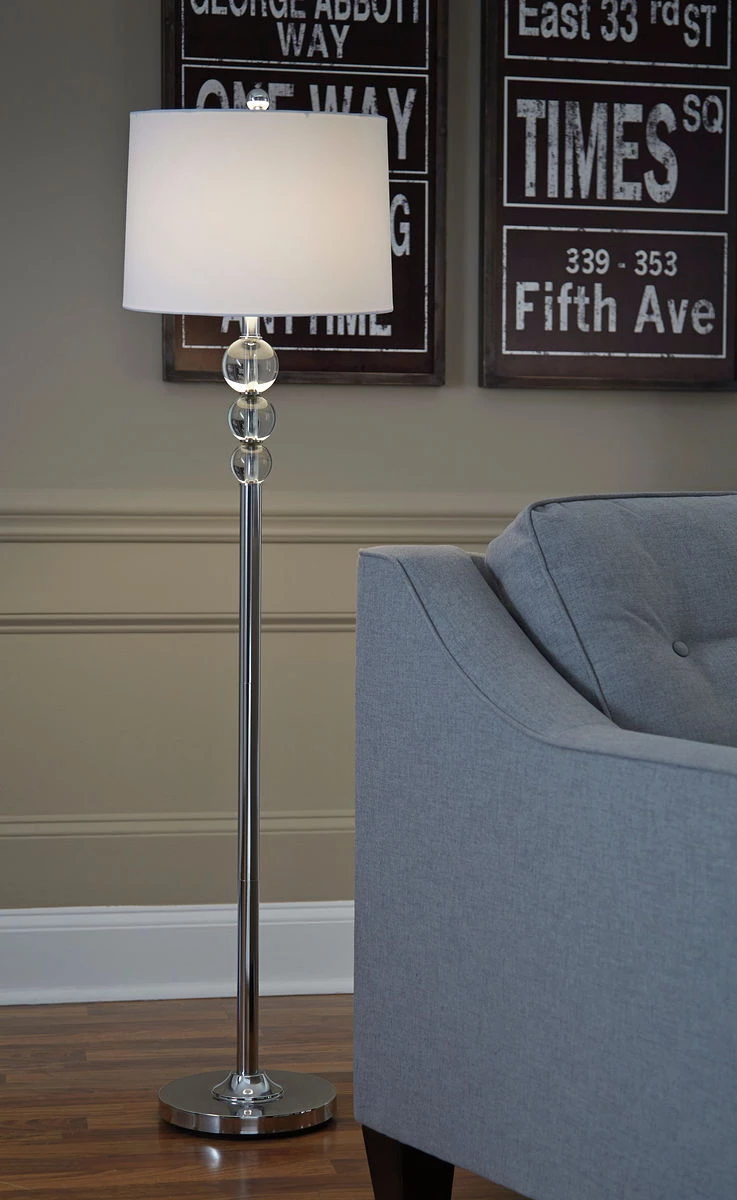 Have a ball beautifying your space with this designer floor lamp. If you’re looking for a clean, ultra-contemporary aesthetic, you’re sure to find this floor lamp’s blend of crystal and chrome-tone metal so delightful. Simply chic drum shade is the perfect complement.