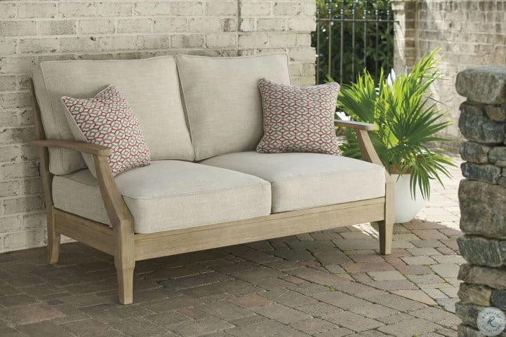 An effortlessly elegant choice in outdoor furniture, this outdoor loveseat marries sturdiness and style in such a delightful way. For that much more weather protection, the loveseat’s eucalyptus wood frame with tapered touches and slat styling is treated to a 5-step finishing process. Sumptuously soft yet remarkably durable, the included cushions and colorful throw pillows are wrapped in a high-performing, low-maintenance Nuvella fabric you’re sure to love.
