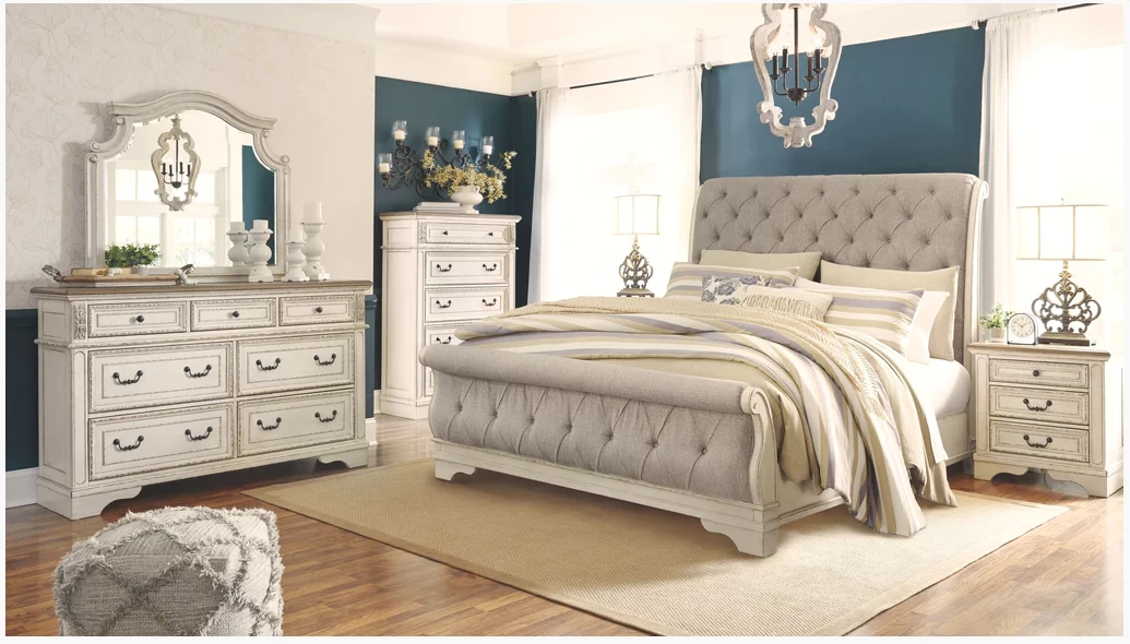 Ashley Realyn Twotone Queen Sleigh Bed With Dresser Mirror & Nightstand Bedroom