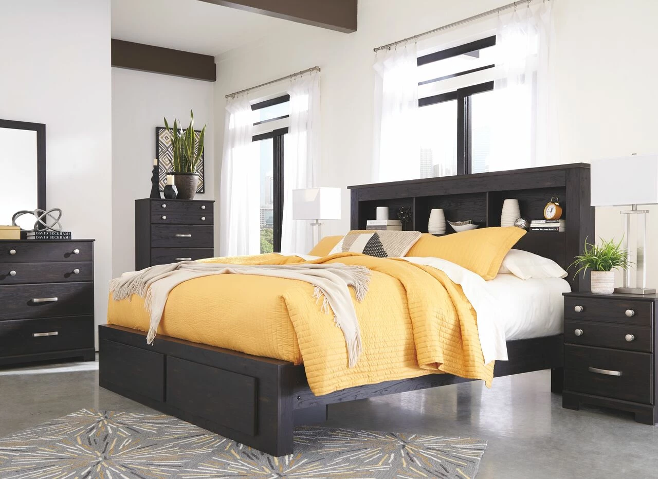 Ashley Reylow Dark Brown Queen Bookcase Bed With Dresser Mirror & Nightstand