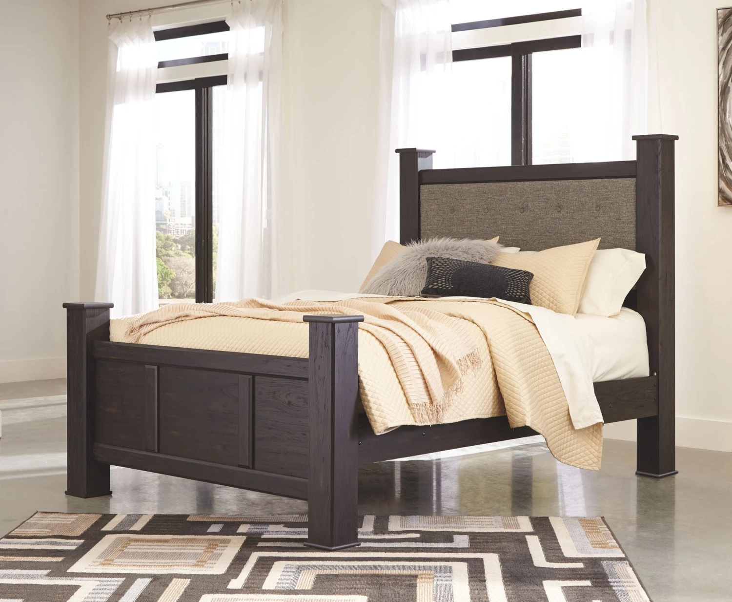 Reylow – Dark Brown – Queen Upholstered Poster Headboard