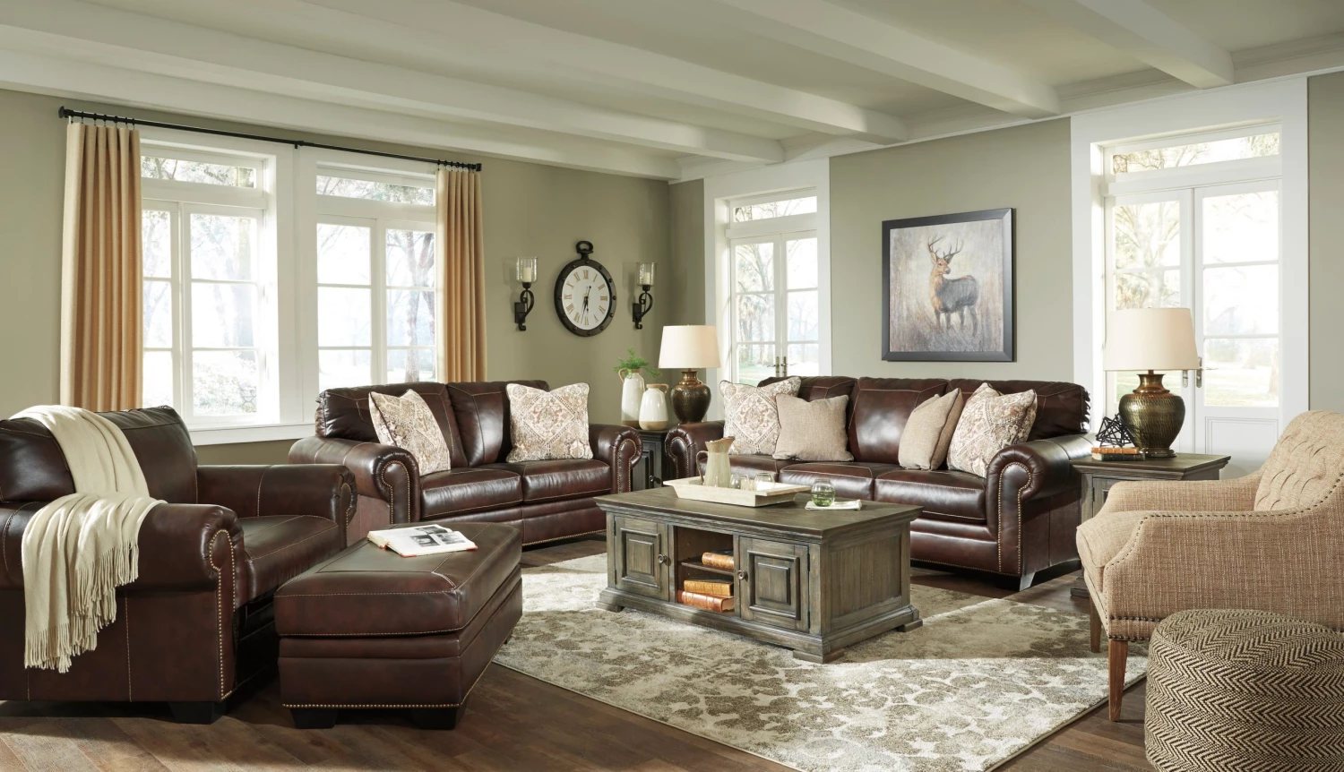 Ashley Roleson Walnut Sofa, Loveseat And Chair A Half Living Room