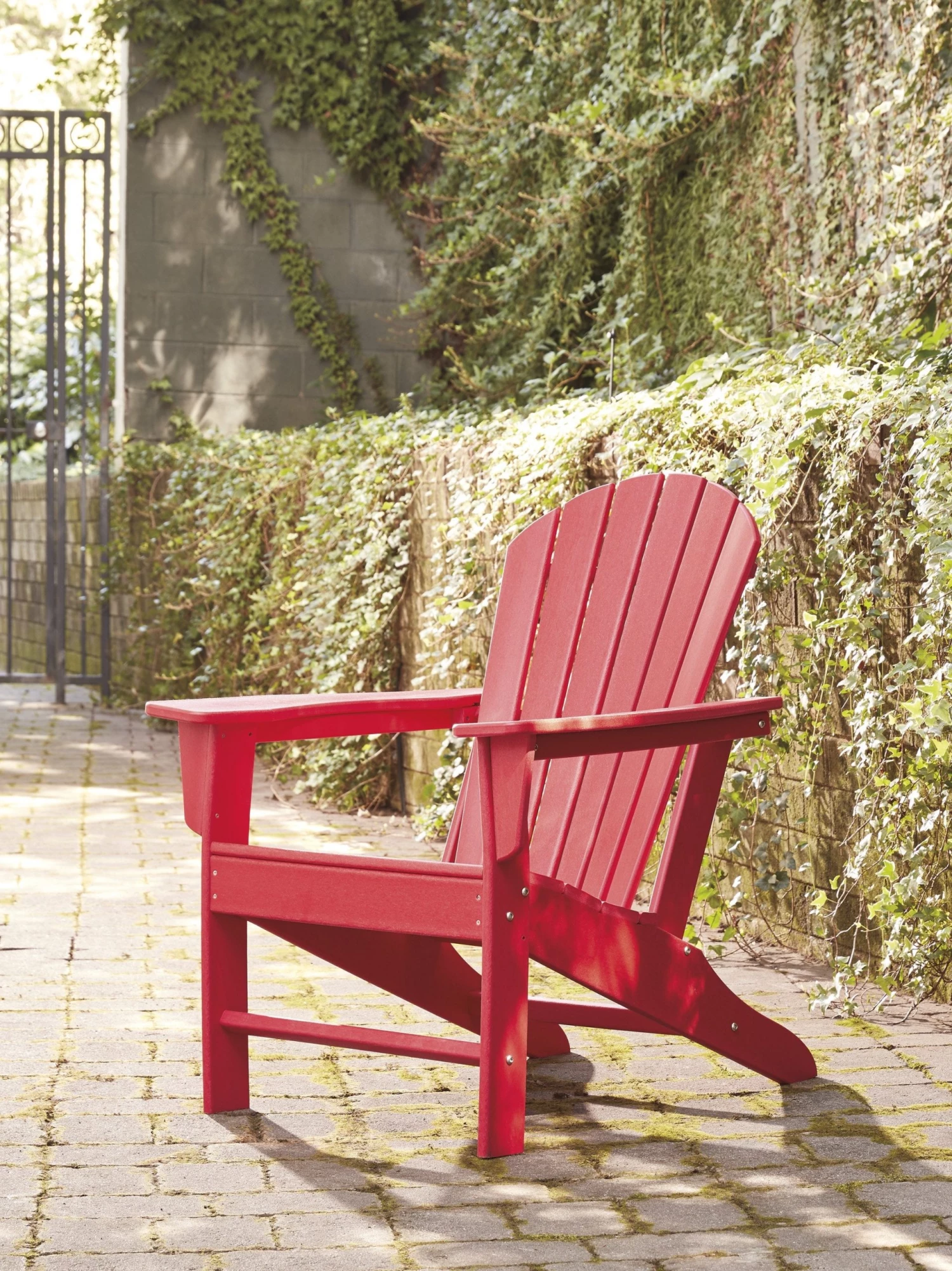 Add cottage-quaint charm to your outdoor oasis with this Adirondack chair in red. Made of a hearty hard plastic material with a touch of texture, it’s sure to weather the seasons beautifully. Designed to shed rainwater, the chair’s slatted styling with shell back shaping provides exceptional form and function.
