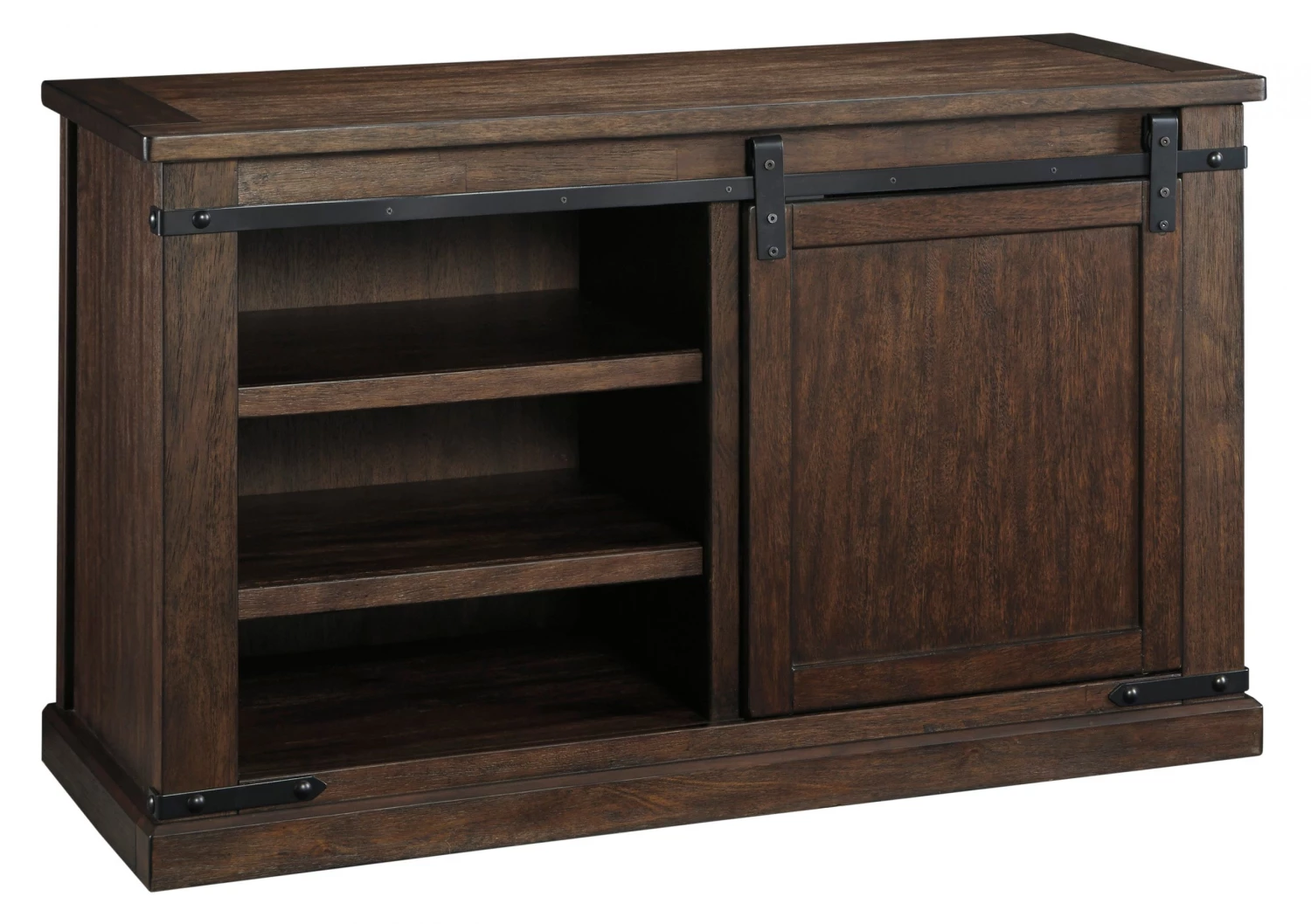 Add a touch of country style to your living area with this 50″ TV stand. Itβs visually appealing with the flexibility you need. Four adjustable shelves are found behind a barn door that you can easily slide from one side to the other. For an uncluttered look, close up either side of the stand to create a casual feel, great for hiding audio-visual essentials when not in useβwhat a concept.