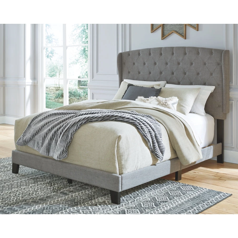 Ashley Vintasso Queen Button Tufted Padded Panel Bed (Gray)