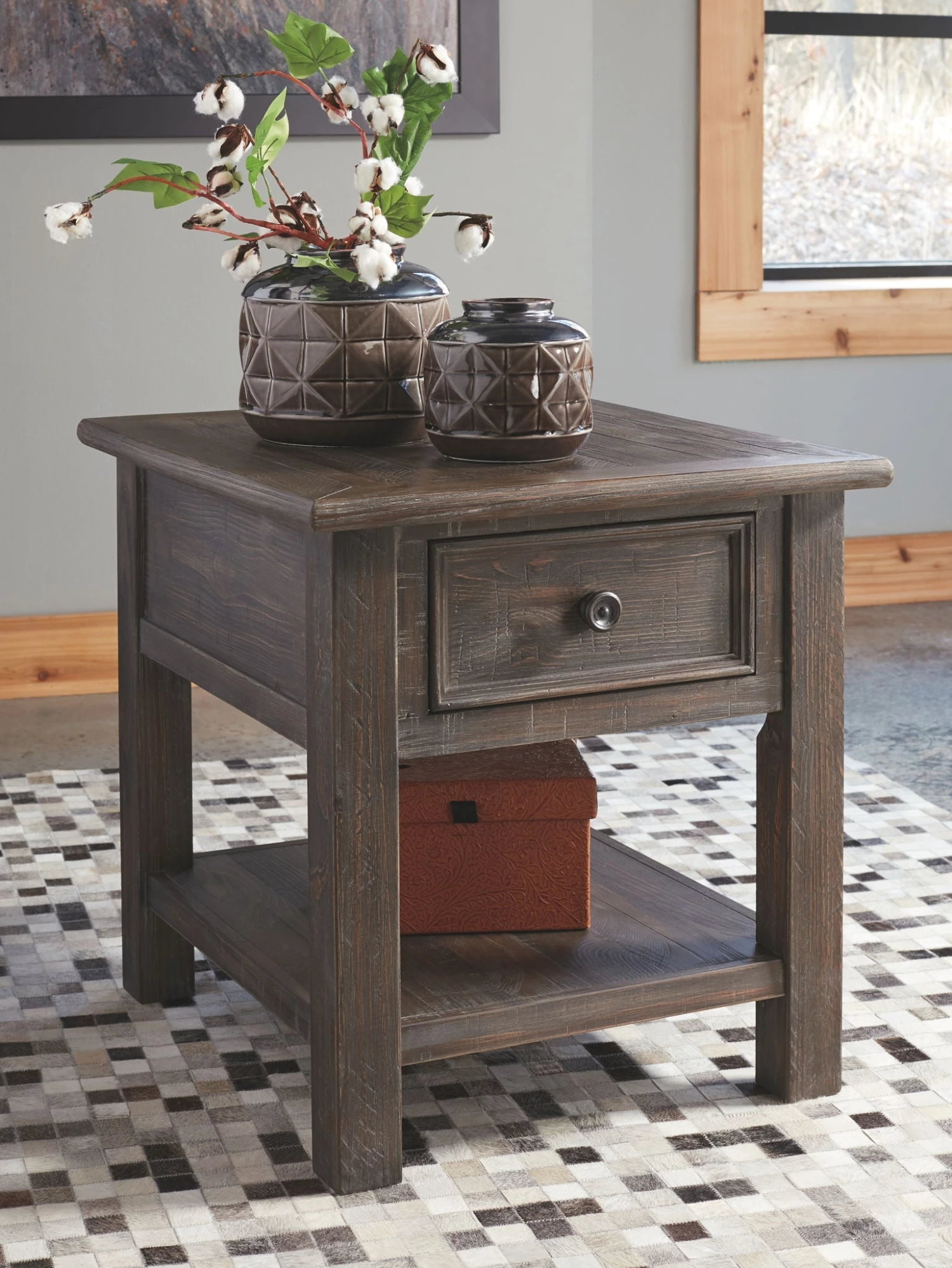 Inspired by heavy and hearty lodge-style furnishings from days gone by, this end table brings the past brilliantly into the present. Distinctive details include a stocky, linear profile, plank-effect display shelf and a distressed aged pine color finish with light wire-brushed texture that’s pure artistry.