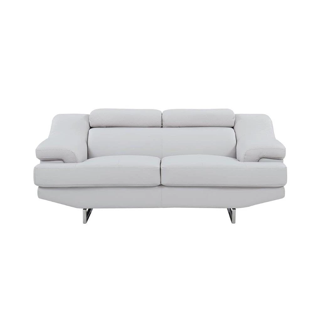 Anyone who visits your home will be inspired and impressed by this stylish and uniquely shaped futuristic loveseat. Its light gray upholstery features clean lines and subtle diamond quilt accent stitching, creating an opulent flare. Offsetting this stylish piece is a front-to-back chrome accent base that adds a glamorous sparkle that makes this bold piece appear like itΓ’ΒΒs floating.