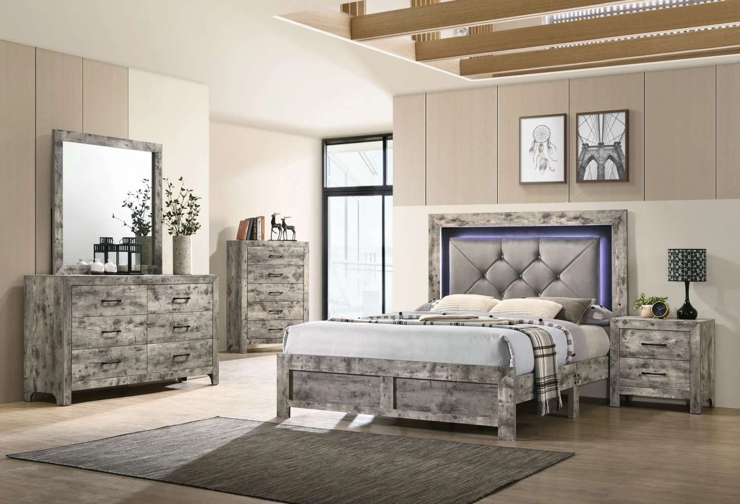 This set includes Queen Bed, Dresser with Mirror and Nightstand.Β